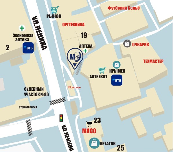 Республика Крым, г. Судак, ул. Ленина, д. 19 (вход в Центральный рынок).